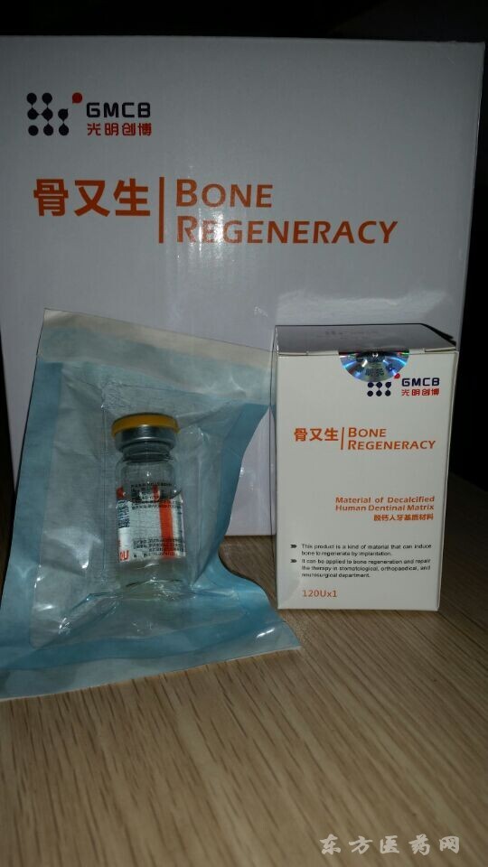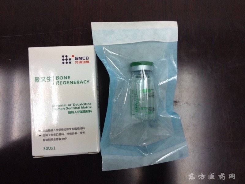 | 功能主治 | 1.脱钙人牙基质材料可应用于神经外科,在进行颅脑外科手术的同时使用该材料进行颅骨修复,与相应支架联合使用时,可一次性完成骨缺损直径达10cm以内的修复。是颅骨修复治疗手术中的一项重大创新。 2. 脱钙人牙基质材料适合于各种骨损伤的修复,对于骨折、骨折不愈合或延迟愈合的治疗效果也非常好,填补了骨诱导材料的空白。 |